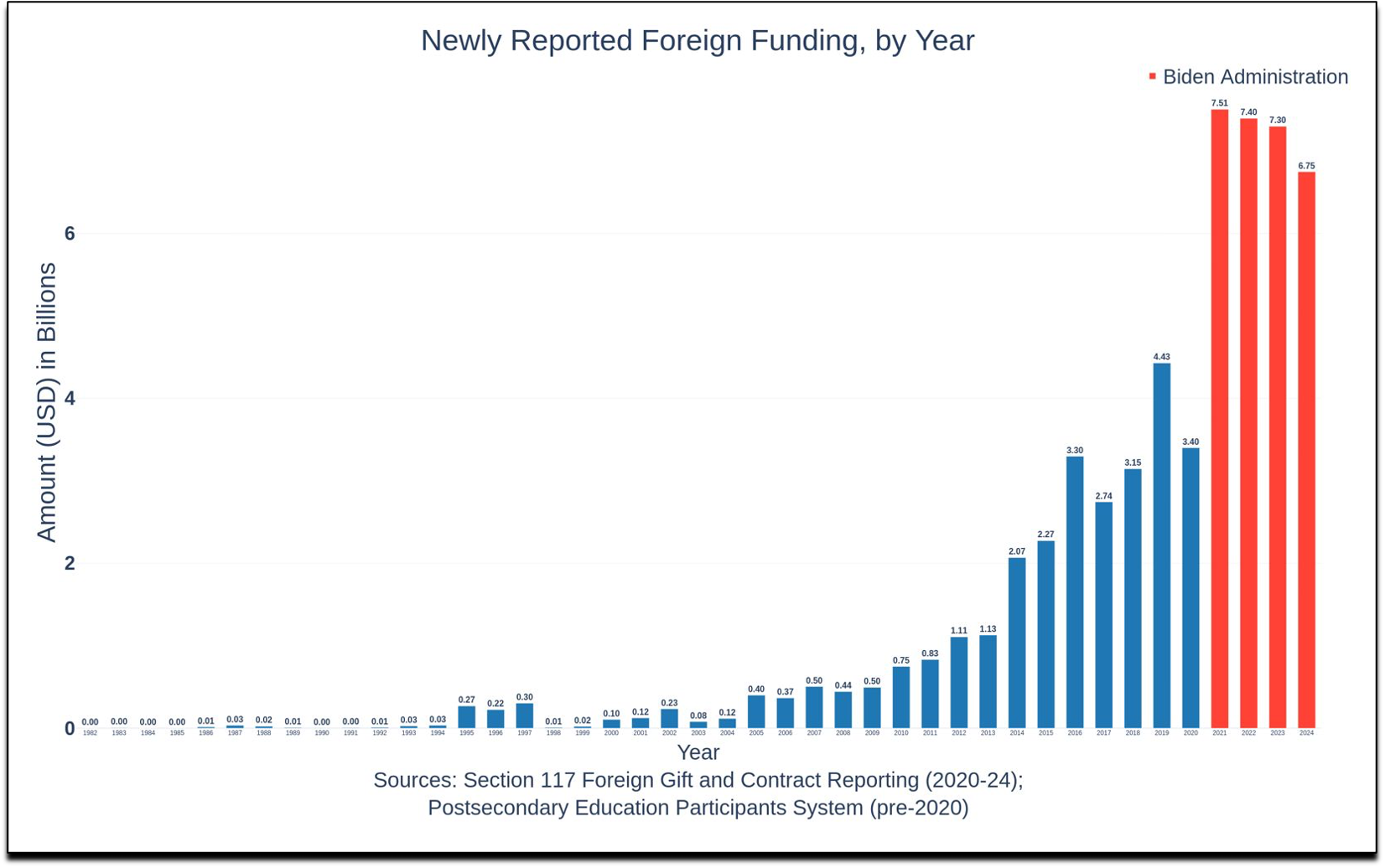 Chinese donations also surged, with $2.3 billion flowing into U.S. universities from 2021 to 2024.